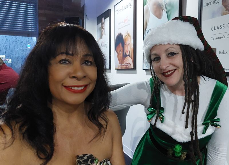 Last Friday morning, Juno and int’l award-winning recording artist CLAUDJA BARRY, joined hosts Andy & Jane to perform on Zoomer Radio’s special Christmas concert.  She had a blast chatting with the hosts, talking about her career, latest projects and assuring everyone that things are good down in Jamaica where Claudja spends time with family and friends, esp. during the cold winter months up here in Toronto…brrrr. They’re ready to welcome Canadian tourists back to their resorts, beaches and attractions.Performing one of her biggest hits “Boogie Woogie Dancing Shoes”, Claudja got the studio audience up on their feet, dancin’ up a storm, cheering and singing along…Prior to her set, Claudja got to schmooze with Zoomie the Elf (Kelly) as well as a quick hello to fellow performer and Canadian music legend, Andy Kim. Big THANK YOU to Andy & Jane for the invitation to Claudja – she loved performing live and reaching out via radio to a whole new audience, introducing her music to a new generation who are now discovering & embracing the joys of disco. Watch for film snippets of the show on YouTube and Zoomer Radio socials. Merry Christmas, Happy Hannukah and Happy New Year to all her fans, music lovers and Zoomer radio folks from one of Canada’s legacy artists, CLAUDJA BARRY.